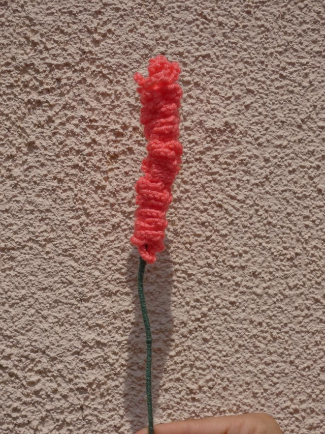 Lavande abricot foncé faite à la main en crochet, la tige est en fil de fer recouverte par de la laine verte.
