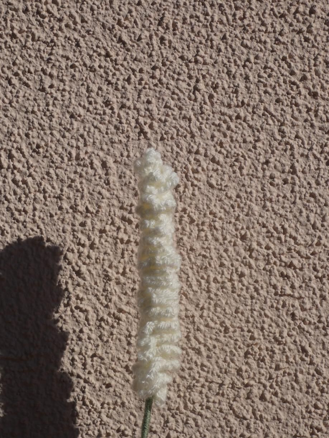 Lavande blanche pailleté faite à la main en crochet, la tige est en fil de fer recouverte par de la laine verte pailleté.
