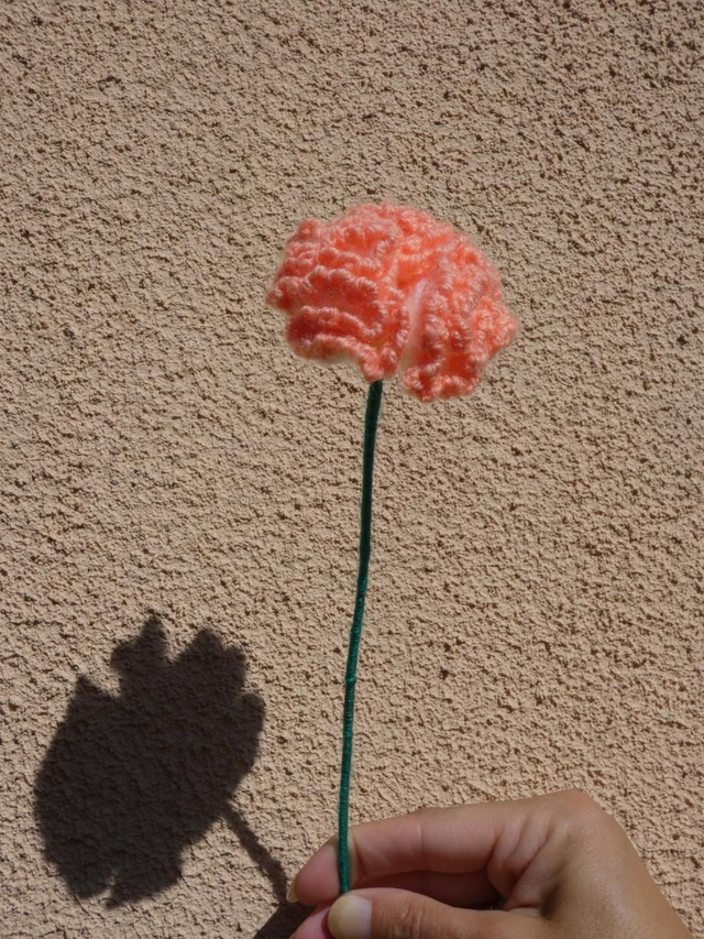 Œillet blanc et abricot fait à la main en crochet, la tige est en fil de fer recouverte par de la laine vert