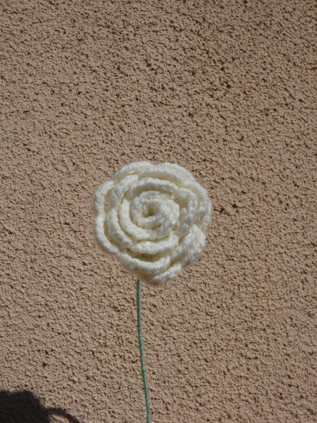 Rose de couleur crème faite à la main de couleur crème, la tige est en fil de fer recouvert d'un fil vert.