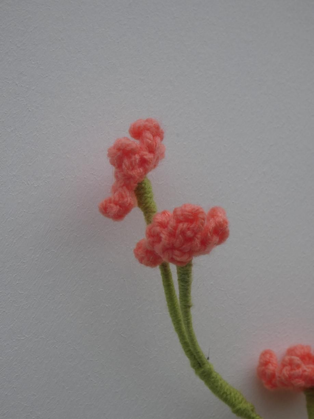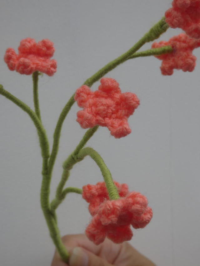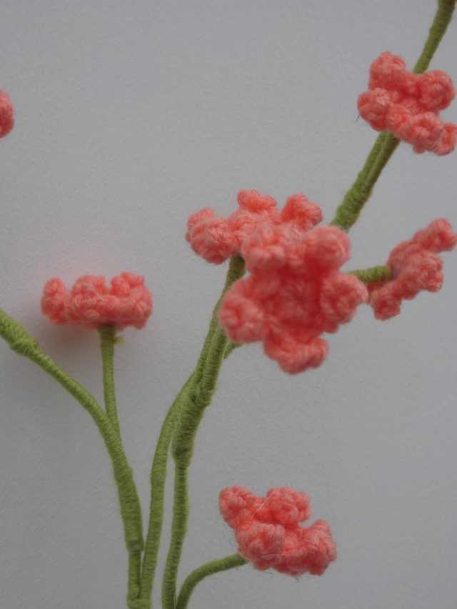 Branche de 9 minis fleurs de couleurs abricot fait en crochet, il se compose de 3 tiges se composant chacune de 3 minis fleurs.