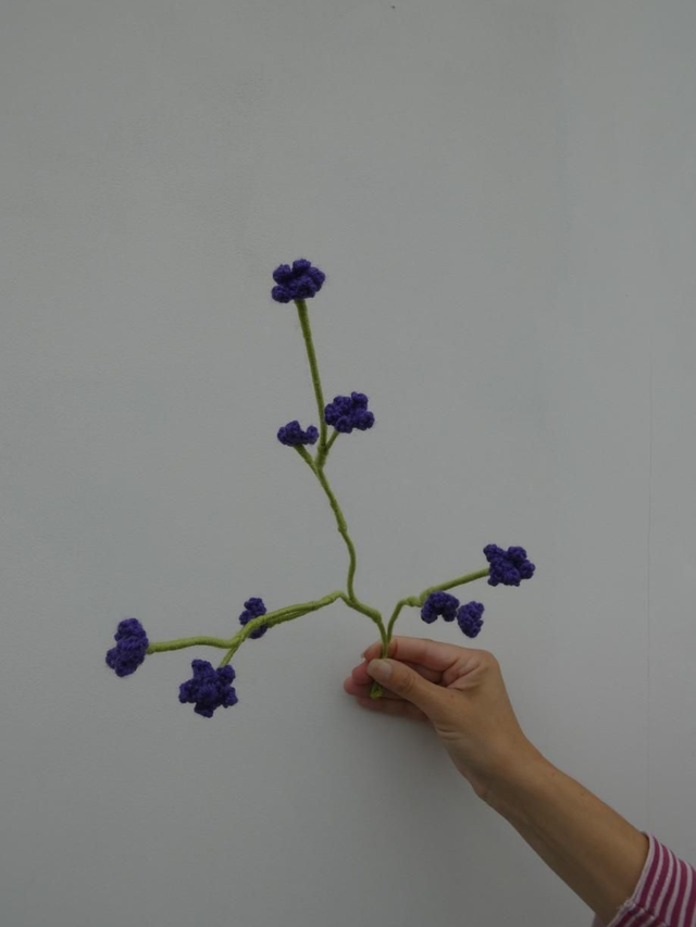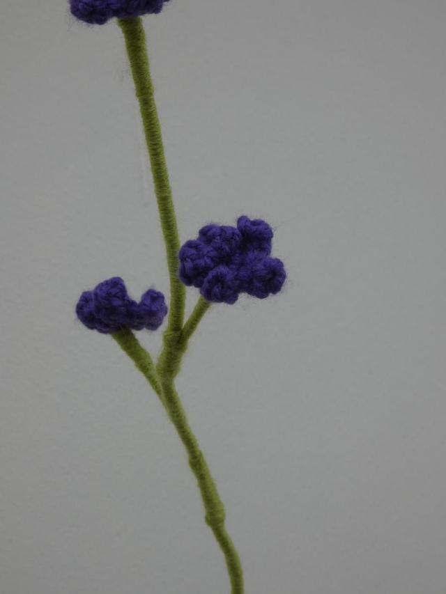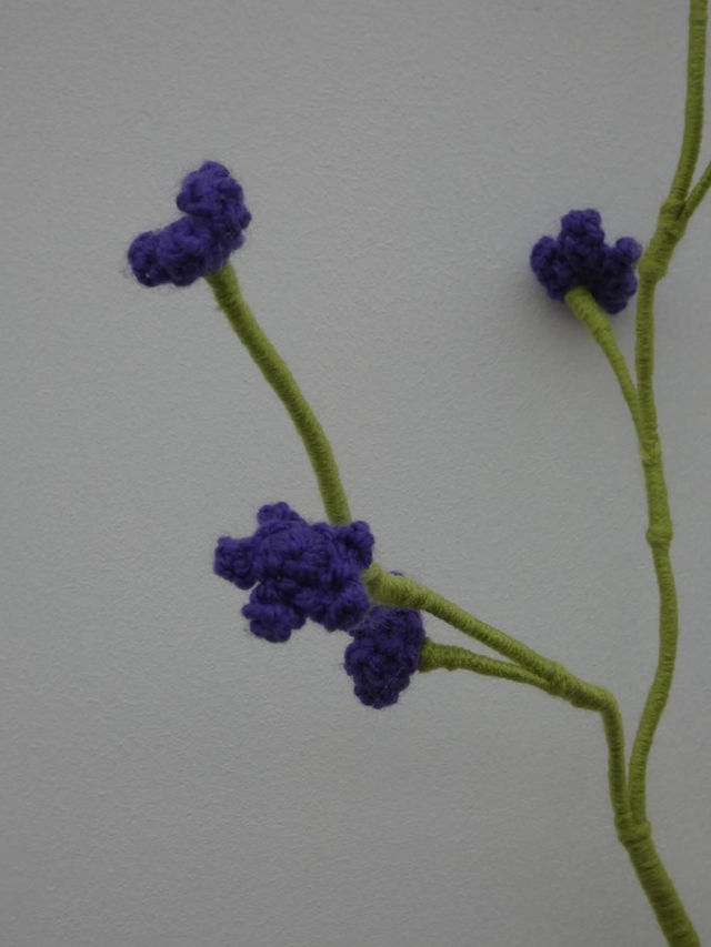 Branche de 9 minis fleurs de couleur violette fait en crochet, il se compose de 3 tiges se composant chacune de 3 minis fleurs.